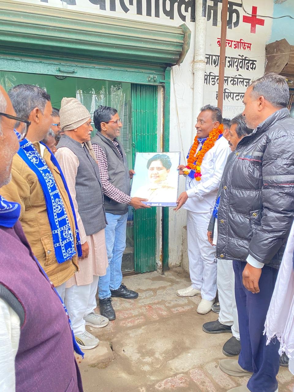 हमीरपुर _माननीय बहन जी के निर्देश पर लाला राम अहिरवार बुंदेलखंड प्रभारी द्वारा हमीरपुर के नवनियुक्त जिला अध्यक्ष छोटेलाल वर्मा को बनाए जाने पर हुआ जोरदार स्वागत आप को बताते चलें माननीय बहन जी के निर्देश पर लालाराम जी द्वारा नया जिला अध्यक्ष छोटे लाल वर्मा को नियुक्त करने की खुशी में कार्यकर्ताओं ने हमीरपुर पहुंच कर बाबा साहब की मूर्ति पर माला अर्पण करने के बाद हमीरपुर जिले के सुमेरपुर कस्बा के डॉक्टर सागर पानी क्लीनिक में भव्य स्वागत किया गया वहीं डॉक्टर सागर जी ने बहन जी की प्रतिमा भेंट की जिसमें मुख्य रूप से रहे छोटेलाल वर्मा जी जिला अध्यक्ष हमीरपुर, बिहारी लाल वर्मा विधानसभा अध्यक्ष, डॉक्टर जितेंद्र कुमार सागर विधानसभा पर प्रभारी हमीरपुर, रामबाबू वर्मा पूर्व मंडल प्रभारी, श्री राम प्रजापति पूर्व जिला पंचायत सदस्य पचखुरा, बाबूराम प्रधान, दीपू वर्मा, राकेश श्रीवास बीएसपी जिला संयोजक सदस्य, आशादीन वर्मा, भूरा श्रीवास, राकेश जी चक पूर्व सभासद सुमेरपुर, सभाजीत श्रीवास, धनीराम साइंस सेंटर अध्यक्ष, सीताराम आदित्य मास्टर साहब, जयप्रकाश वर्मा, गोपाल पाल आदि लोग उपस्थित रहे
