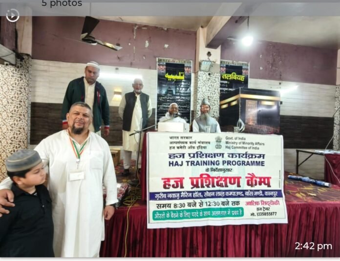 कानपुर,15 फ़रवरी,रविवार, तंज़ीम खुद्दाम आज़मीने हज की जानिब से चौथा हज तरबियती कैंप ग़रीब नवाज़ मैरिज हॉल बांसमंडी कानपुर में आयोजित हुआ जिसमें इस वर्ष हज पर जाने वाले लगभग 450 पुरुष और महिलाओं ने शिरकत की। क़ाज़ी फैज़ान अली एडवोकेट ने कुरआन पाक की तिलावत से प्रोग्राम का आगाज़ किया।मुफ्ती इक़बाल क़ासिमी साहब ने हाजियों को बताया कि वह मदीना मुन्नवरा में रसूलल्लाह सल्लाहु आलैह वसल्लम, अबु बकर सिद्दीक़ रज़िअल्लातालाअनहु और हज़रत उमर फारूक़