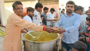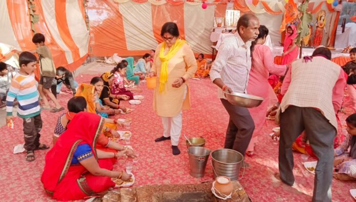 पूर्व पार्षद मेनका सिंह के द्वारा विगत वर्षों की भांति कराई जा रही श्रीनगर पहाड़पुर में श्रीमद् भागवत कथा के समापन के पश्चात हुआ विशाल भंडारा